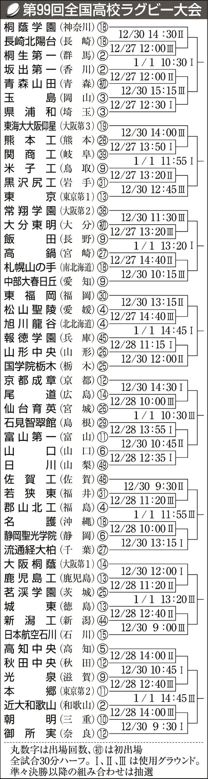 第99回全国高校ラグビー大会 Aシードは桐蔭学園 京都成章 御所実業 ラグビーリパブリック