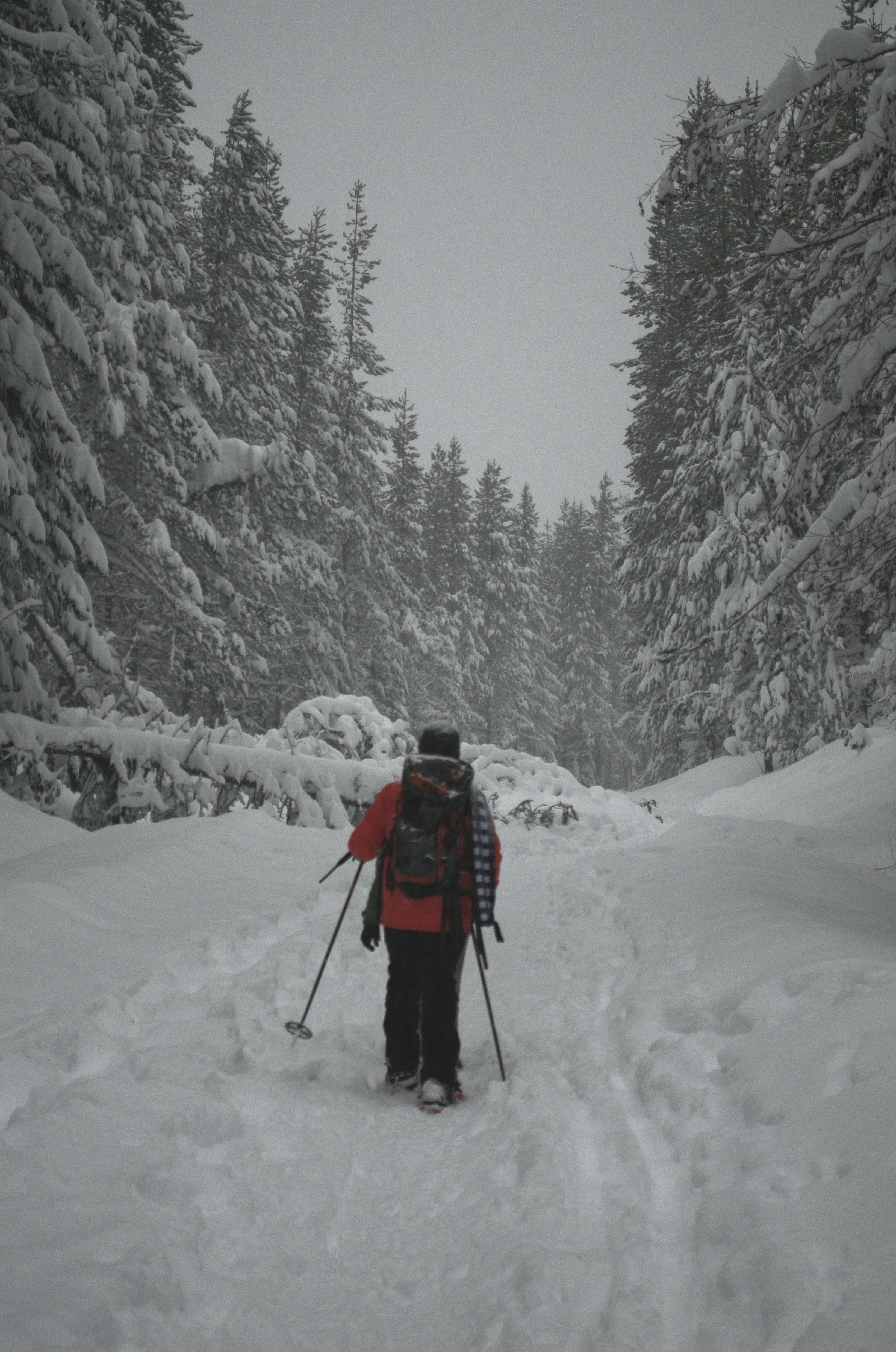 Person Walking Between Trees Covered With Snow During Daytime Photo Free Canada Image On Unsplash