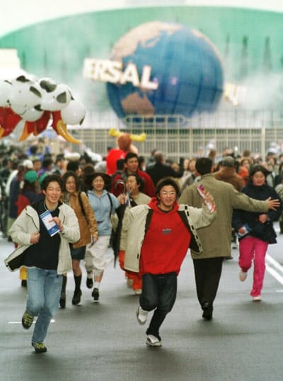 翌日のグランドオープンを前に招待客らでにぎわうユニバーサル スタジオ ジャパン 01年3月30日 usj の14年の歩みを写真で 14 72 朝日新聞デジタル