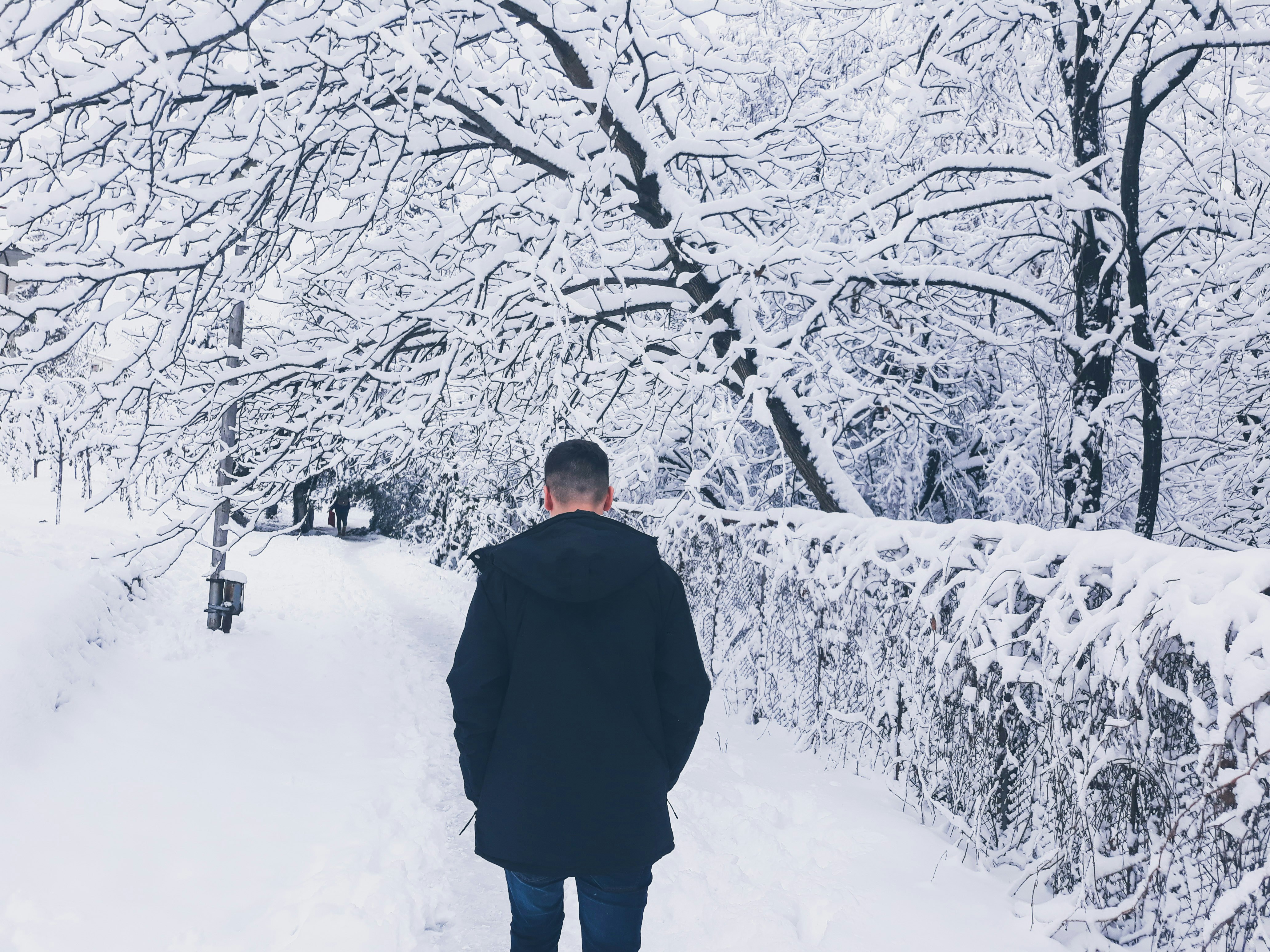 Man Walking On Snow Covered Path Photo Free Nature Image On Unsplash