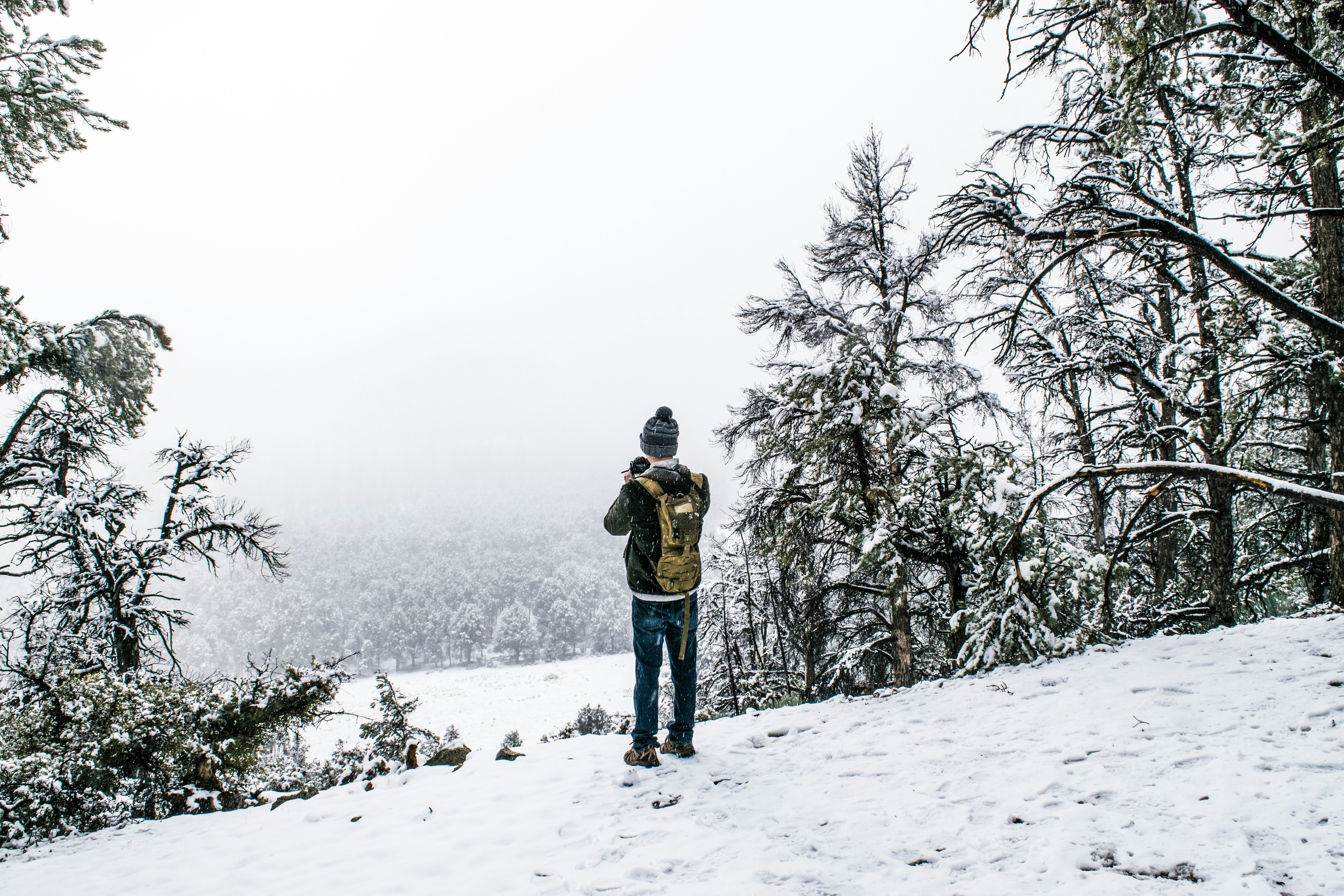 Man Walking On Snow Covered Field Surrounded By Trees Photo Free Nature Image On Unsplash