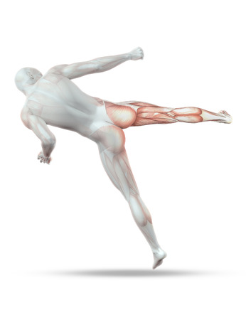 部分的な筋肉の地図を持ったキック ボクシング ポーズで男性医療図の 3 D レンダリングします の写真素材 画像素材 Image