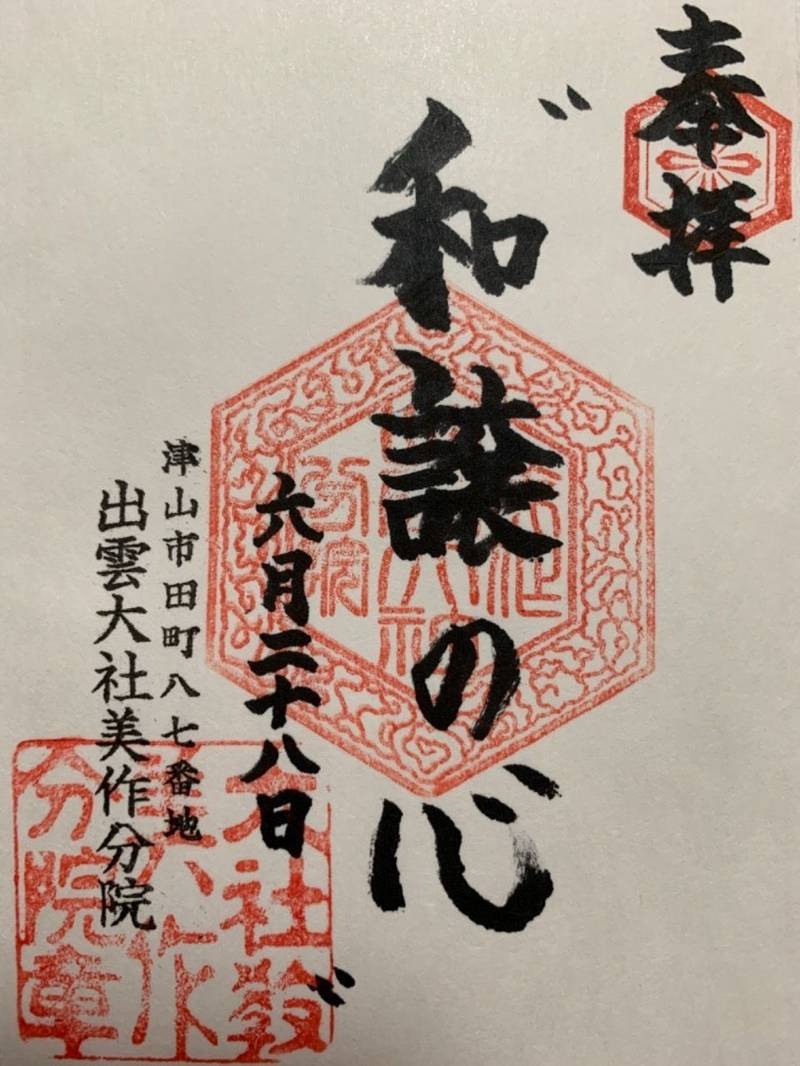 出雲大社美作分院 御朱印 津山市 岡山県 Omairi おまいり