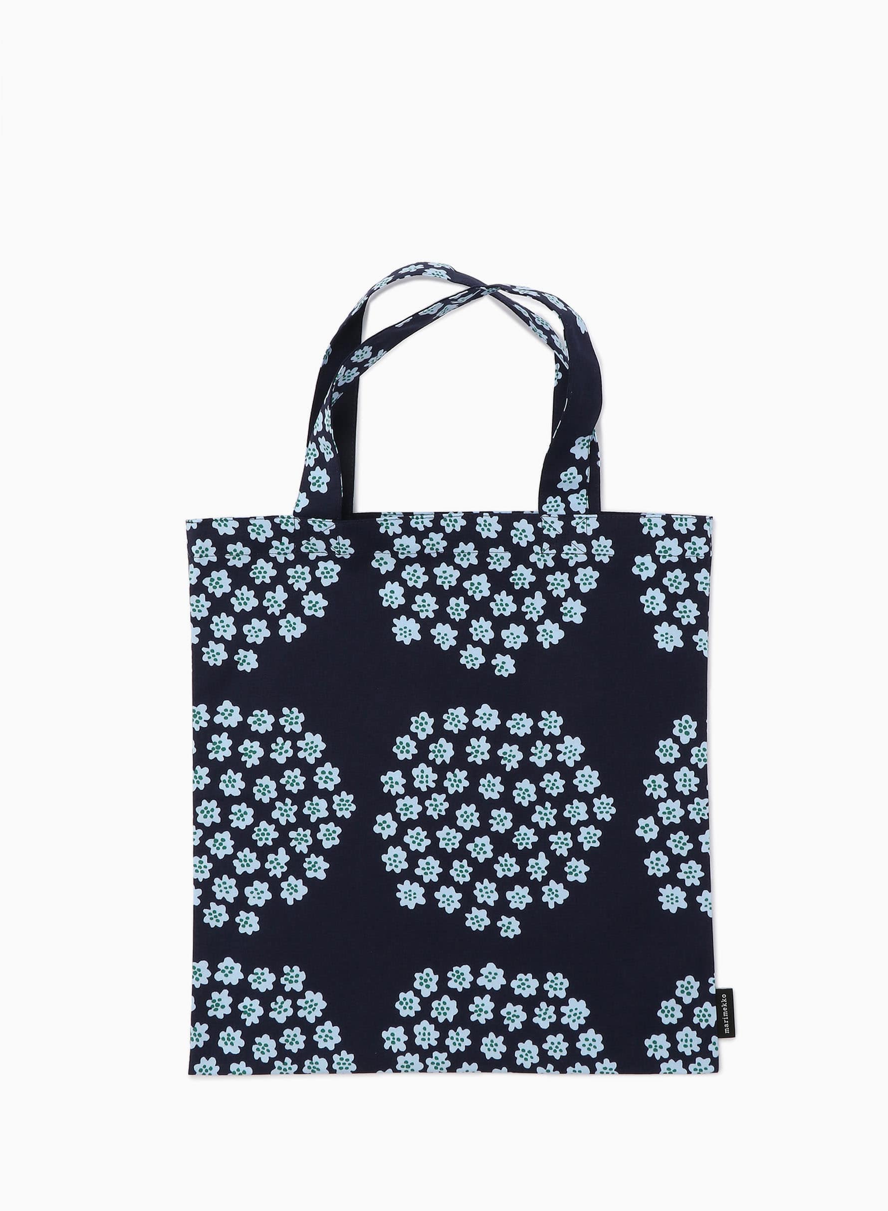 マリメッコ Marimekkoプケッティpukettiブルーxホワイト トートバッグ 北欧ビンテージ食器 雑貨 ファブリック まいにち北欧道具