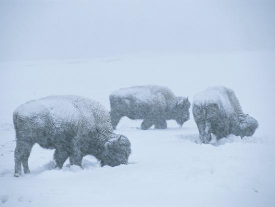 American Bison Graze During A Snowstorm On A Snow Covered Plain Photographic Print Tom Murphy Art Com
