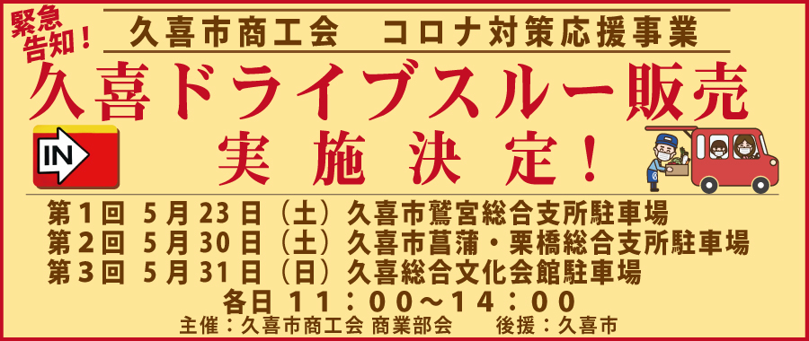 久喜ドライブスルー販売情報 新型コロナ対策 久喜市商工会 商工業者の経営支援 地域の活性化