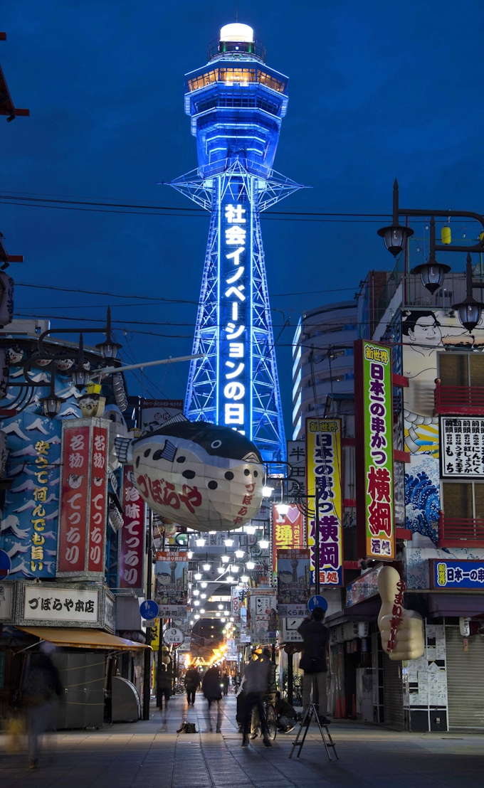 新型コロナ 通天閣 青くライトアップ 医療従事者に感謝 日本経済新聞