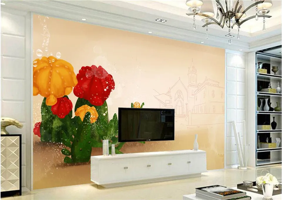 Custom Mural 3d Cute Cactus Wallpaper For Walls 3d Desert Aesthetic Wall Covering Living Room Home Decor Hand Painted Building Wallpaper For Walls 3d Wallpaper For Wallscustom Mural Aliexpress