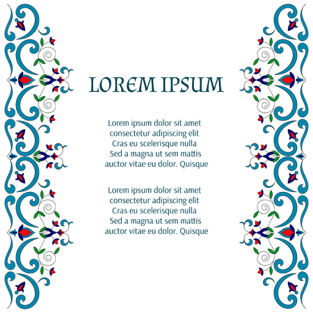 アラビア花柄の枠 伝統的なイスラム教のデザイン モスクの装飾エレメント 中央にテキスト入力領域を持つエレガンス背景 のベクター画像素材 ロイヤリティフリー