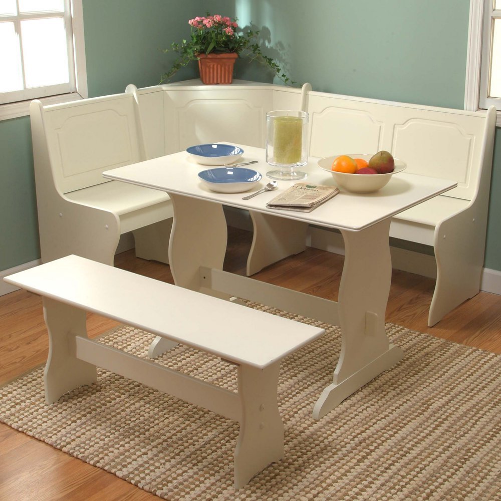 Unavailable Nook Corner Dining Set Kitchen Table Bench White 3 Pieces Breakfast Set Booth
