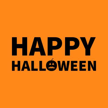 幸せのハロウィーン レタリング悲しい黒かぼちゃシルエットのテキスト バナーが グリーティング カード フラットなデザイン オレンジの赤ちゃんの背景 ベクトル図のイラスト素材 ベクタ Image