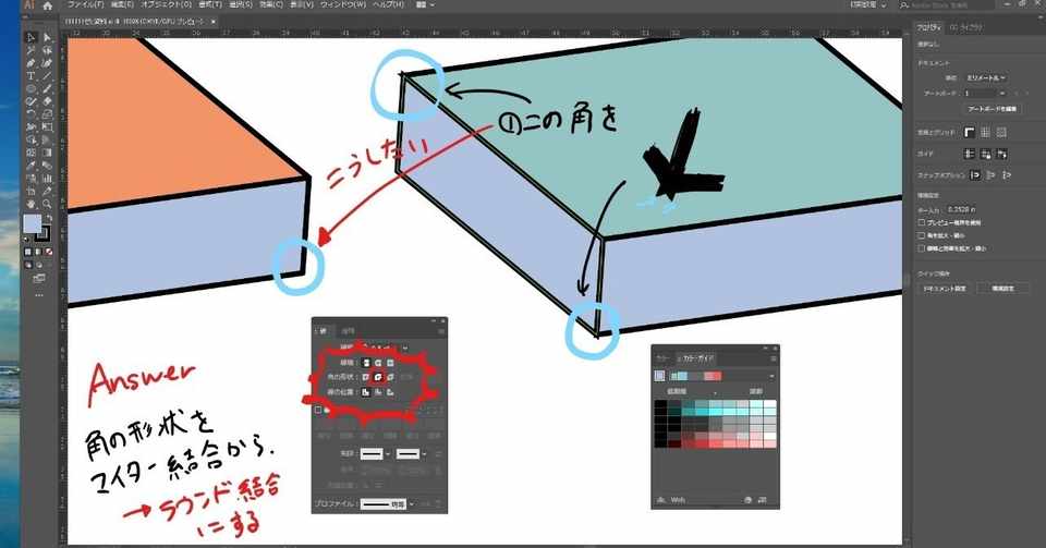 イラレ トラブルと解決1 立方体の角がとがる がい Note