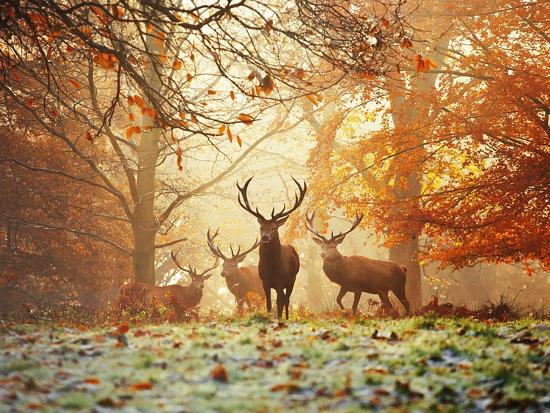 Four Red Deer In The Autumn Forest Art Print Alex Saberi Art Com