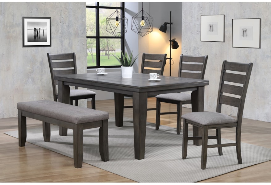 Crown Mark Bardstown 6 Piece Dining Set W 4 Chairs Bench Northeast Factory Direct Table Chair Set With Bench