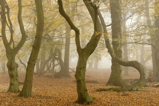 Beech Tree Trunks In Autumn Mist Beacon Hill Country Park The National Forest Leicestershire Uk Photographic Print Ross Hoddinott Art Com