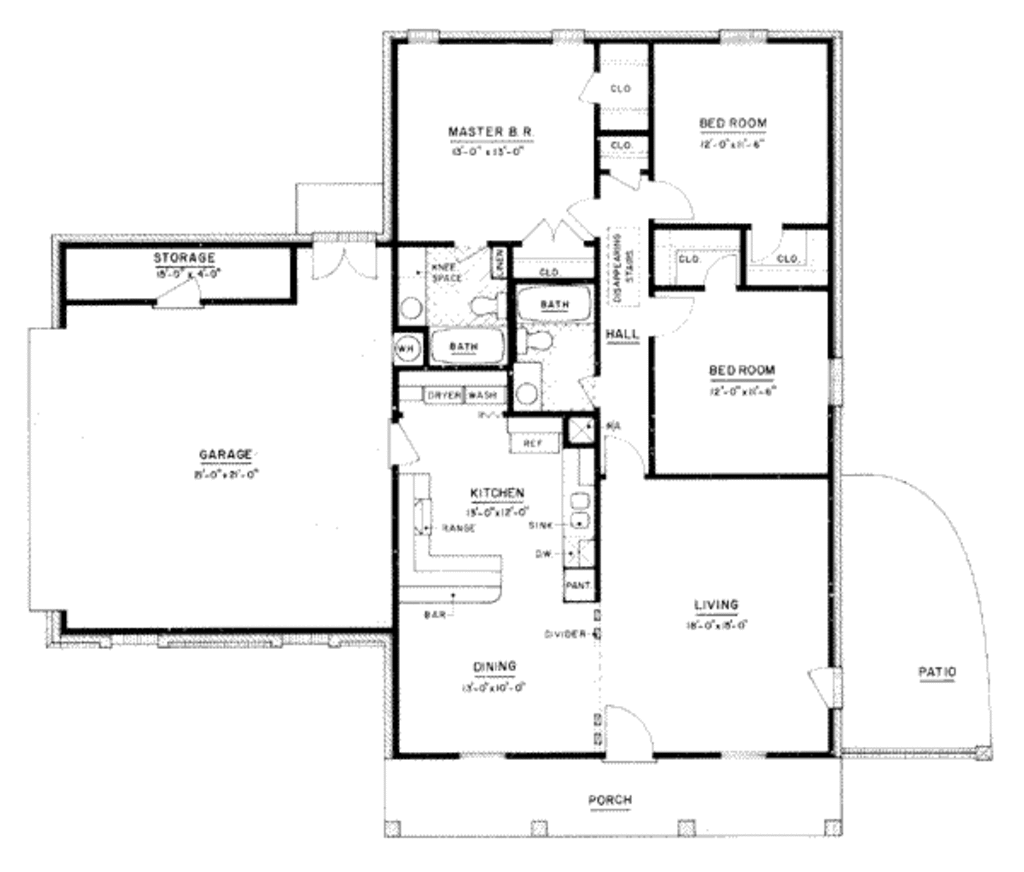 Ranch Style House Plan 3 Beds 2 Baths 12 Sq Ft Plan 36 358 Builderhouseplans Com