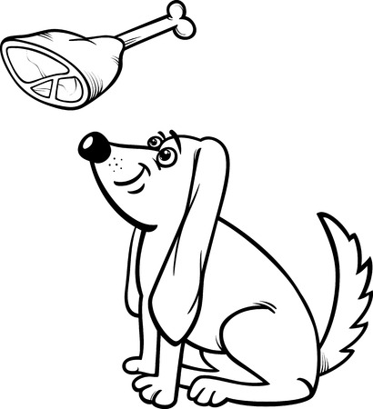 ハムまたはハンチ肉料理オブジェクトの白黒漫画イラスト クリップ アートの塗り絵のイラスト素材 ベクタ Image